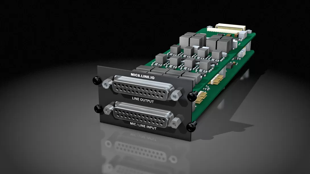 MIC8.LINE.IO is a converter module for is a converter module for PRODIGY.MC, PRODIGY.MP and MAVEN.A.