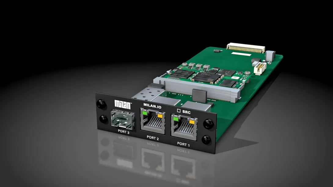 MILAN.IO is an audio network module* for the PRODIGY Series and MAVEN.A to interface AVB/Milan streams.