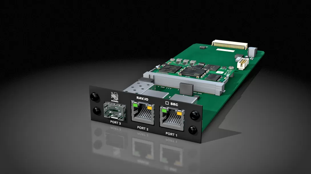 RAV.IO is an audio network module for the PRODIGY Series and MAVEN.A to interface RAVENNA streams.