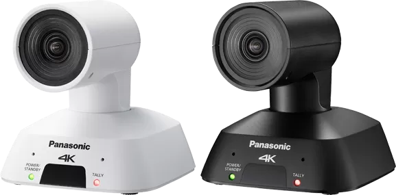 The Panasonic AW-UE5WG/KG (likely a variant of AW-UE4WG/KG compact PTZ series) is a desktop/mountable 4K PTZ camera for lecture capture, video conferencing, eSports, and live streaming. It delivers UHD 4K30 video with 111° ultrawide FOV via single-cable USB-C/PoE, built-in stereo mic (48kHz LPCM/AAC), HDMI output, and RTMP/RTMPS direct streaming to YouTube/Facebook.