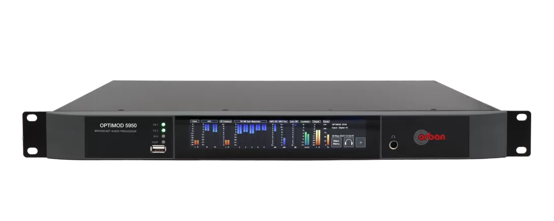 The OPTIMOD 5950 is a compact 1 RU design and offers a powerful package of features including Orban’s breakthrough MX Peak Limiter technology. Equipped with a high-resolution touch display and the ability to be controlled remotely via any HTML5 web browser, the OPTIMOD 5950 combines user-friendly operation with the highest quality OPTIMOD audio processing for FM and DAB+/HD Radio broadcasts.